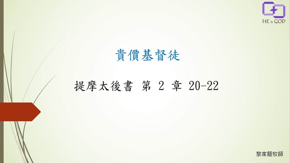證道經文:提摩太後書 2:20-22